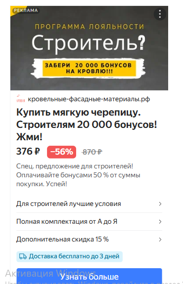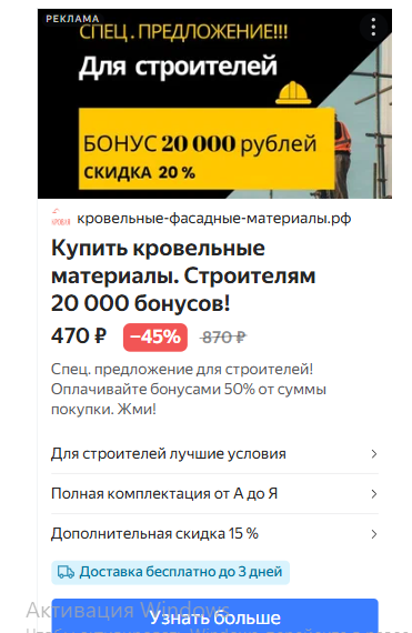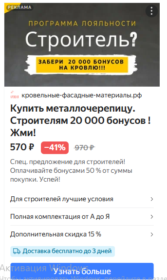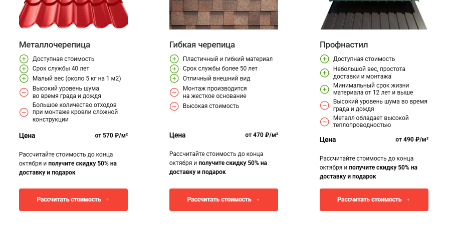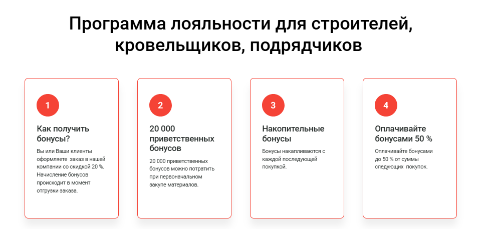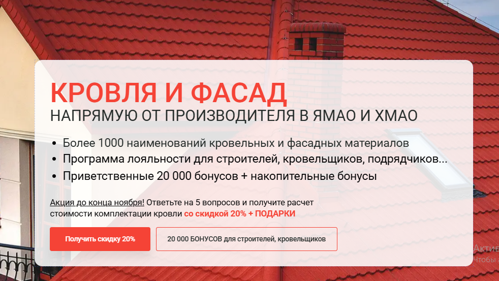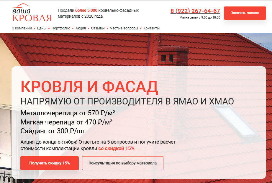 Поэтому для подрядчиков и кровельщиков я сделала отдельный лендинг со своим оффером и фокусом на сотрудничество.