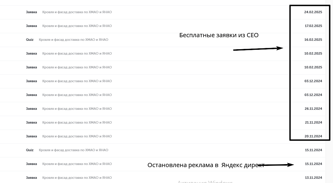 Кстати, после остановки рекламы в Яндекс Директ, сайт продолжал давать бесплатные заявки! Вот что значит правильно настроить Сео)