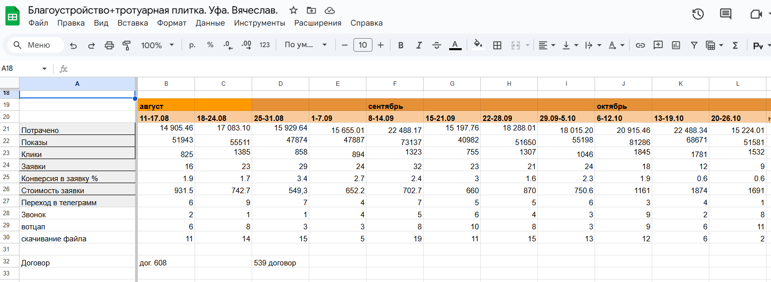 К осени, когда сезон закончился, стоимость заявки ожидаемо выросла почти в 2 раза. Вячеслав принял взвешенное решение - поставить рекламу на паузу до следующего сезона, а не «жечь бюджет ради галочки».